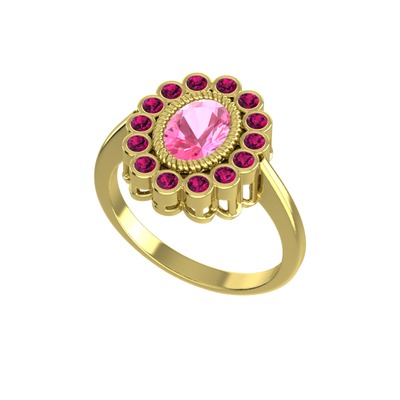 Pembe kuvars ve rodolit garnet 8 ayar altın yüzük