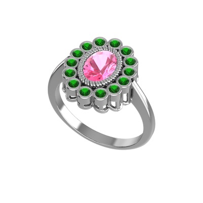 Pembe kuvars ve yeşil kuvars 14 ayar beyaz altın yüzük