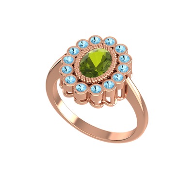 Peridot ve akuamarin 8 ayar rose altın yüzük