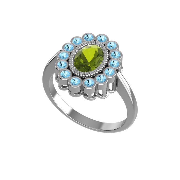 Peridot ve akuamarin 925 ayar gümüş yüzük