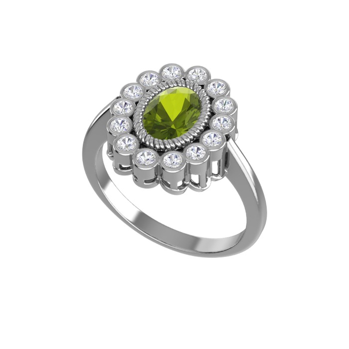 Peridot ve beyaz zirkon 925 ayar gümüş yüzük