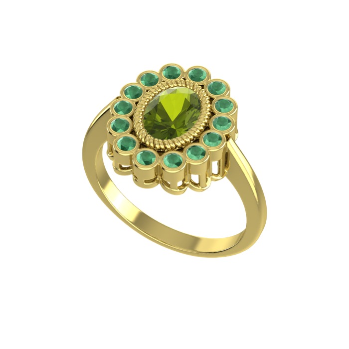 Peridot ve kök zümrüt 8 ayar altın yüzük