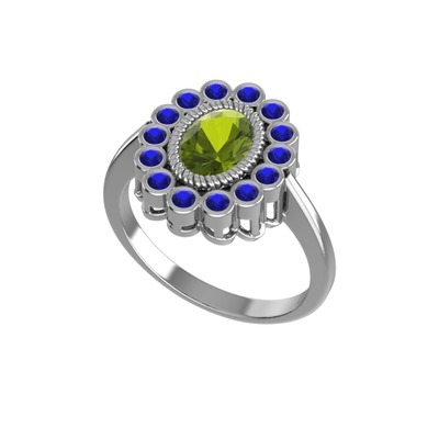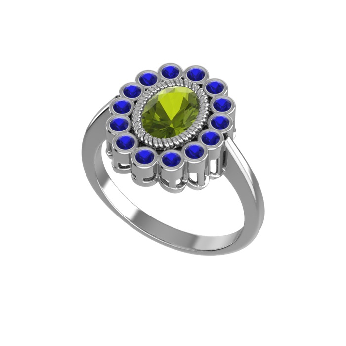 Peridot ve lab safir 8 ayar beyaz altın yüzük