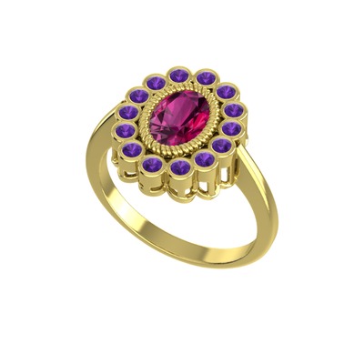 Rodolit garnet ve ametist 14 ayar altın yüzük