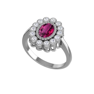 Rodolit garnet ve beyaz zirkon 14 ayar beyaz altın yüzük