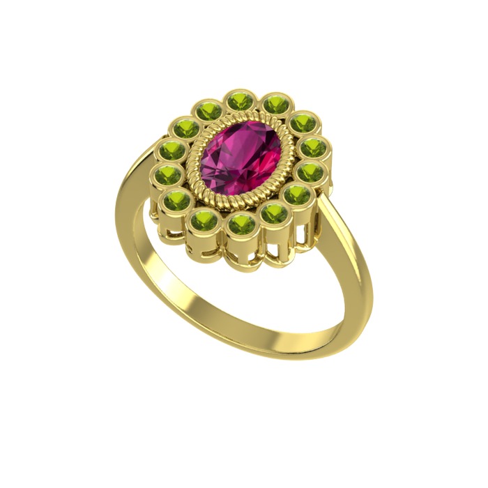 Rodolit garnet ve peridot 8 ayar altın yüzük