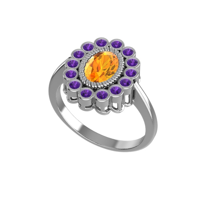 Sitrin ve ametist 14 ayar beyaz altın yüzük