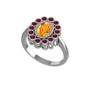 Sitrin ve kök yakut 8 ayar beyaz altın yüzük
