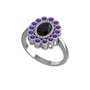 Siyah zirkon ve ametist 14 ayar beyaz altın yüzük