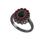 Siyah zirkon ve garnet 925 ayar siyah rodyum kaplama gümüş yüzük