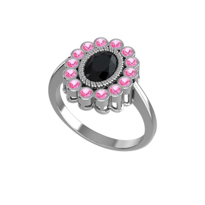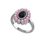 Siyah zirkon ve pembe kuvars 14 ayar beyaz altın yüzük