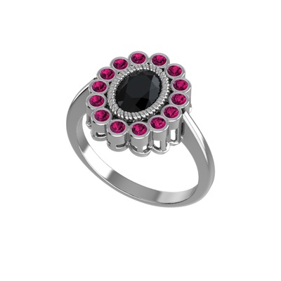 Siyah zirkon ve rodolit garnet 18 ayar beyaz altın yüzük