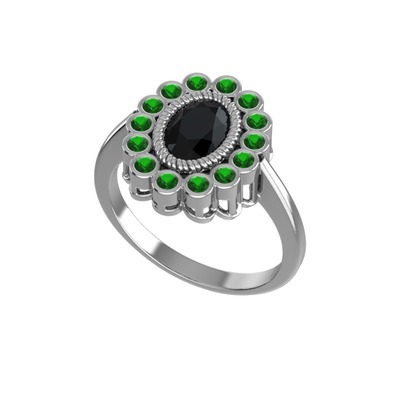 Siyah zirkon ve yeşil kuvars 18 ayar beyaz altın yüzük