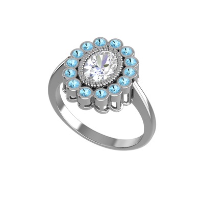 Swarovski ve akuamarin 18 ayar beyaz altın yüzük
