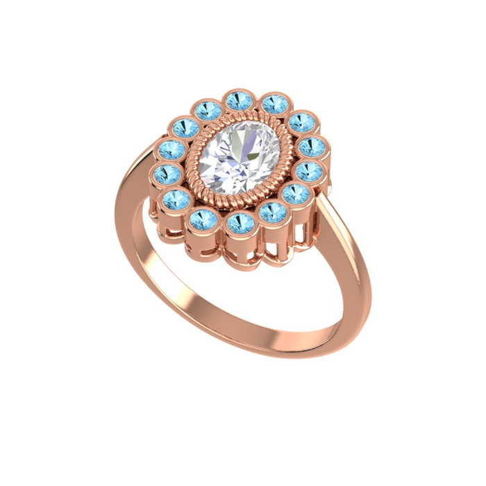 Swarovski ve akuamarin 18 ayar rose altın yüzük