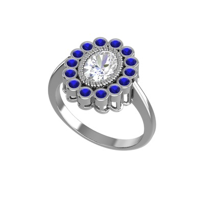 Swarovski ve lab safir 18 ayar beyaz altın yüzük