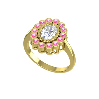 Swarovski ve pembe kuvars 8 ayar altın yüzük