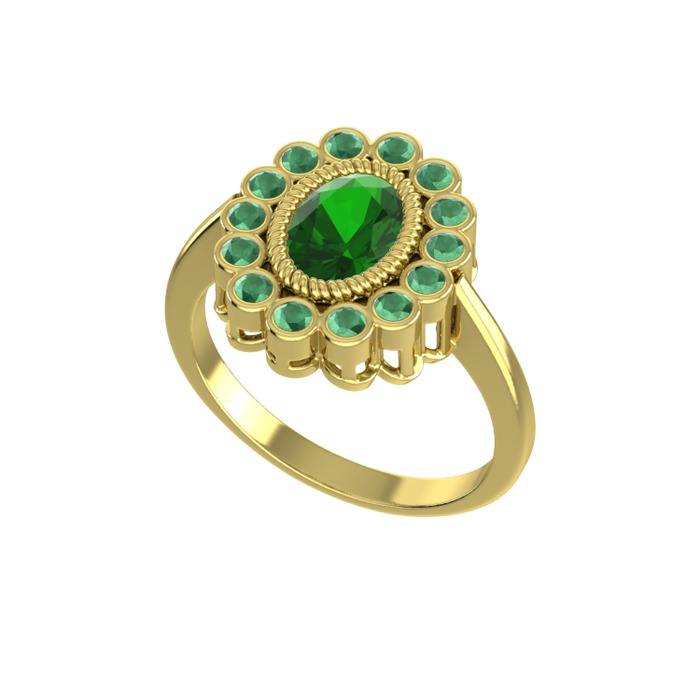 Yeşil kuvars ve kök zümrüt 14 ayar altın yüzük