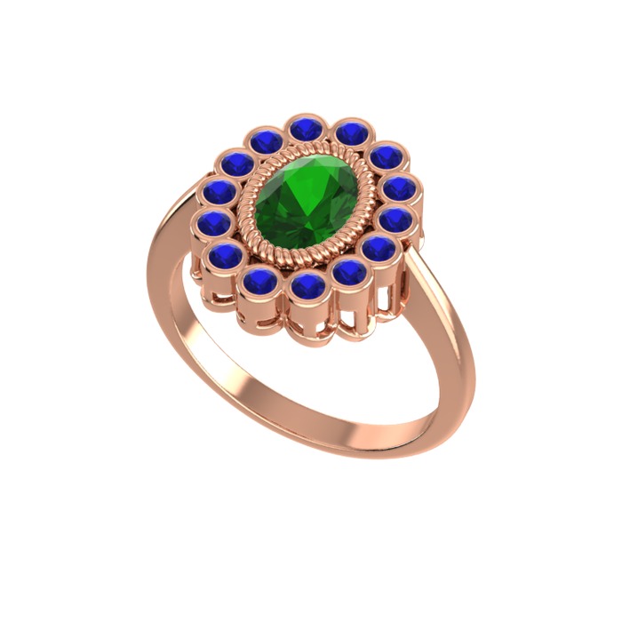 Yeşil kuvars ve lab safir 18 ayar rose altın yüzük