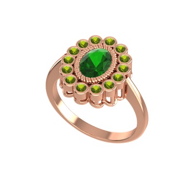 Yeşil kuvars ve peridot 14 ayar rose altın yüzük