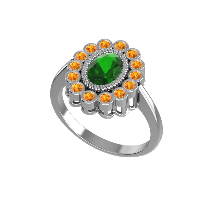 Yeşil kuvars ve sitrin 8 ayar beyaz altın yüzük