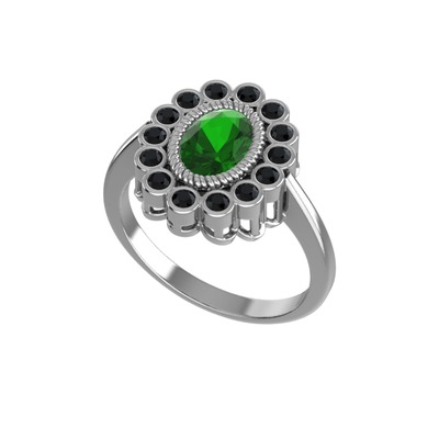 Yeşil kuvars ve siyah zirkon 8 ayar beyaz altın yüzük