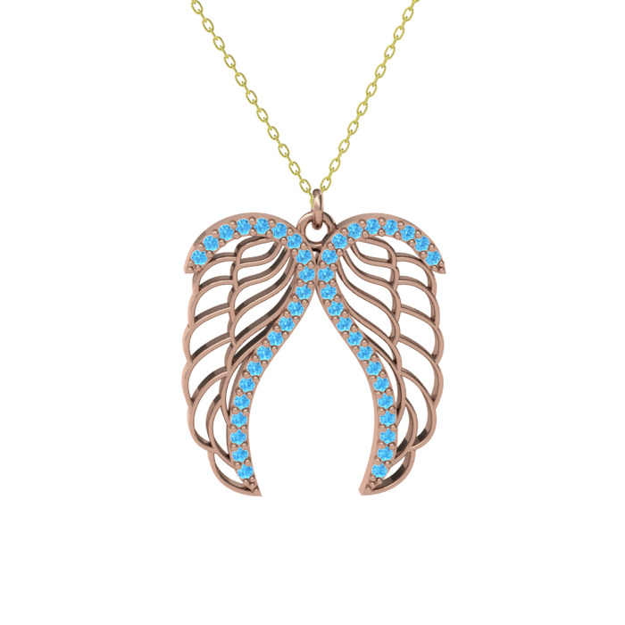 Akuamarin 18 ayar rose altın kolye (40 cm altın rolo zincir)