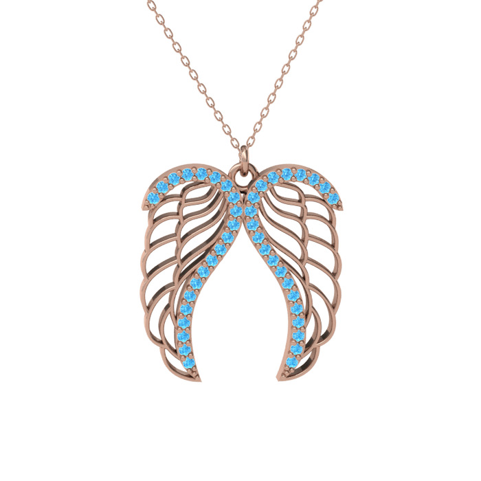 Akuamarin 925 ayar rose altın kaplama gümüş kolye (40 cm rose altın rolo zincir)