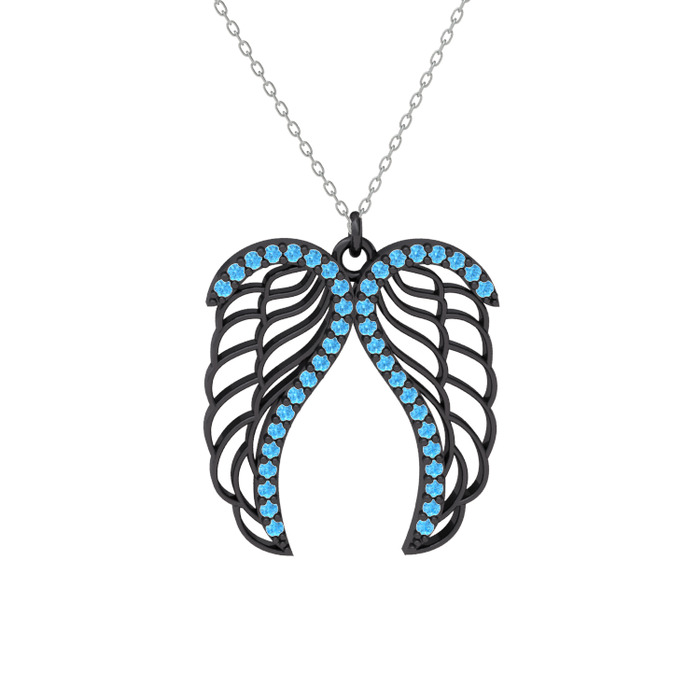 Akuamarin 925 ayar siyah rodyum kaplama gümüş kolye (40 cm beyaz altın rolo zincir)