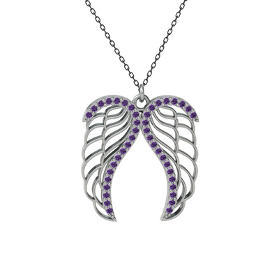 Ametist 18 ayar beyaz altın kolye (40 cm gümüş rolo zincir)