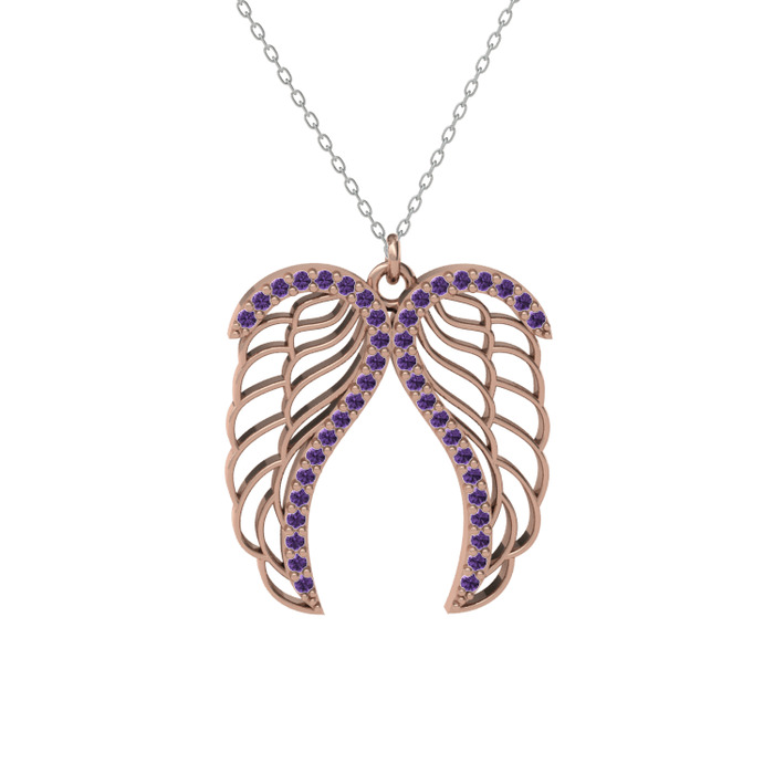 Ametist 8 ayar rose altın kolye (40 cm beyaz altın rolo zincir)