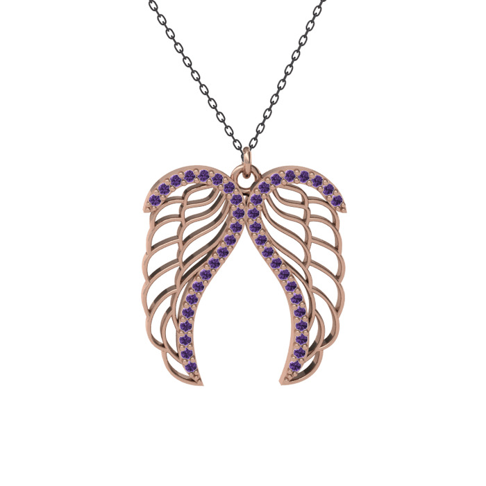 Ametist 8 ayar rose altın kolye (40 cm gümüş rolo zincir)