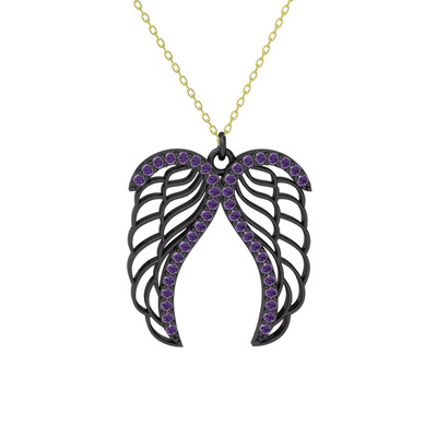 Ametist 925 ayar siyah rodyum kaplama gümüş kolye (40 cm altın rolo zincir)