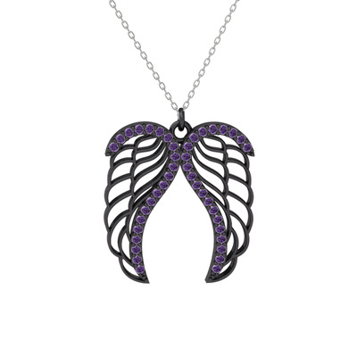 Ametist 925 ayar siyah rodyum kaplama gümüş kolye (40 cm beyaz altın rolo zincir)