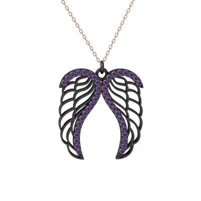 Ametist 925 ayar siyah rodyum kaplama gümüş kolye (40 cm rose altın rolo zincir)
