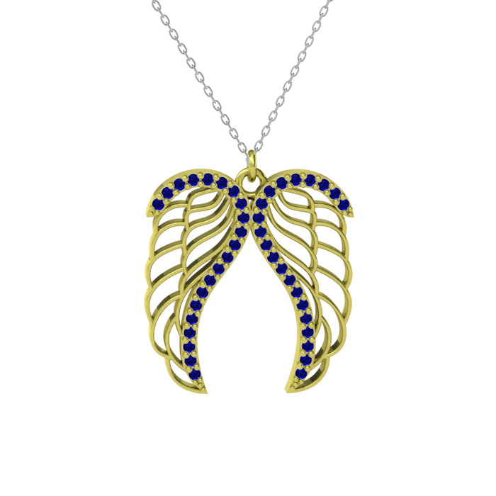 Lab safir 14 ayar altın kolye (40 cm gümüş rolo zincir)