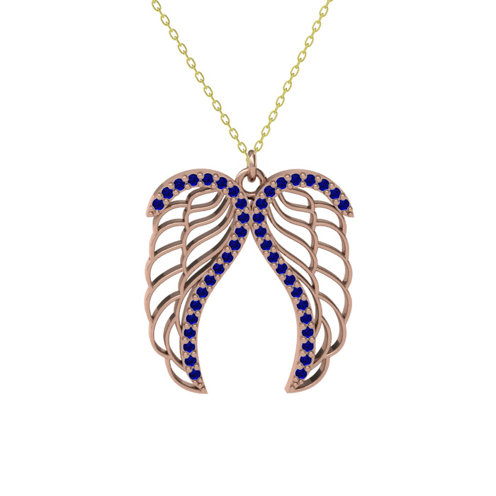 Lab safir 18 ayar rose altın kolye (40 cm altın rolo zincir)