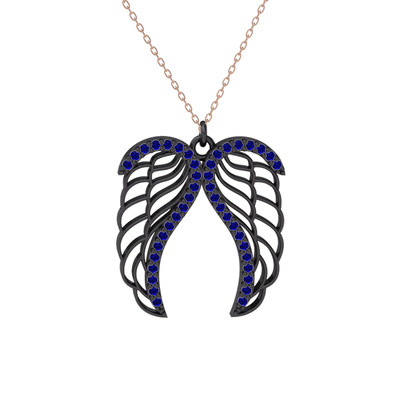 Lab safir 925 ayar siyah rodyum kaplama gümüş kolye (40 cm rose altın rolo zincir)