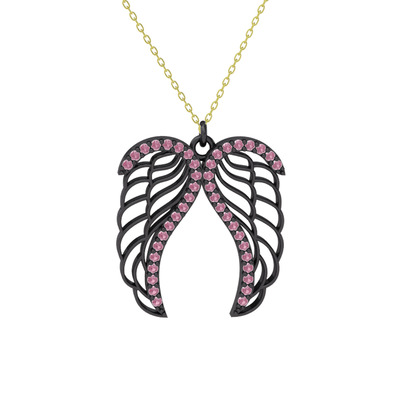 Pembe kuvars 925 ayar siyah rodyum kaplama gümüş kolye (40 cm altın rolo zincir)