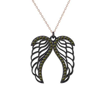 Peridot 925 ayar siyah rodyum kaplama gümüş kolye (40 cm gümüş rolo zincir)