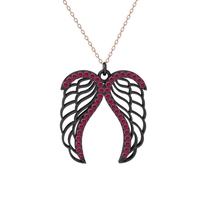 Rodolit garnet 925 ayar siyah rodyum kaplama gümüş kolye (40 cm rose altın rolo zincir)
