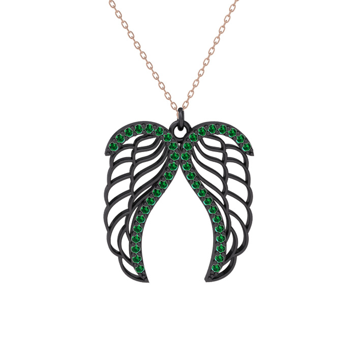 Yeşil kuvars 925 ayar siyah rodyum kaplama gümüş kolye (40 cm rose altın rolo zincir)