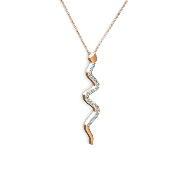 Akuamarin 18 ayar rose altın kolye (40 cm rose altın rolo zincir)