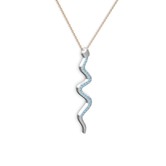 Akuamarin 8 ayar beyaz altın kolye (40 cm rose altın rolo zincir)