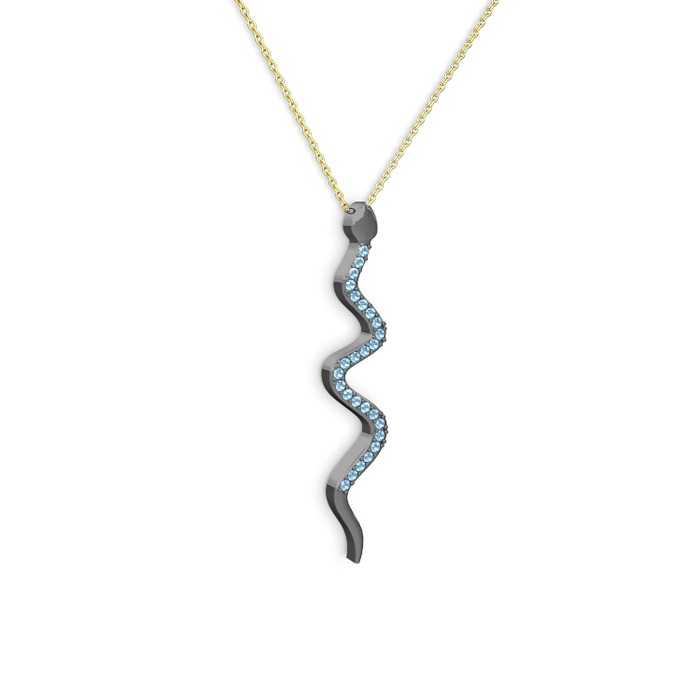 Akuamarin 925 ayar siyah rodyum kaplama gümüş kolye (40 cm altın rolo zincir)