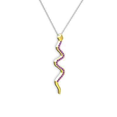 Ametist 14 ayar altın kolye (40 cm beyaz altın rolo zincir)