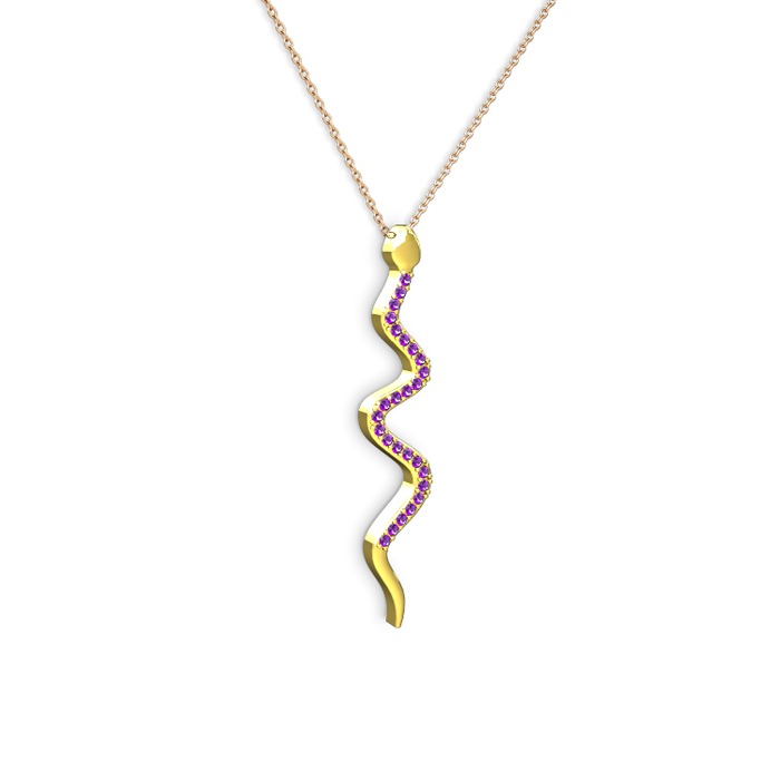 Ametist 14 ayar altın kolye (40 cm rose altın rolo zincir)