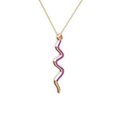 Ametist 14 ayar rose altın kolye (40 cm gümüş rolo zincir)