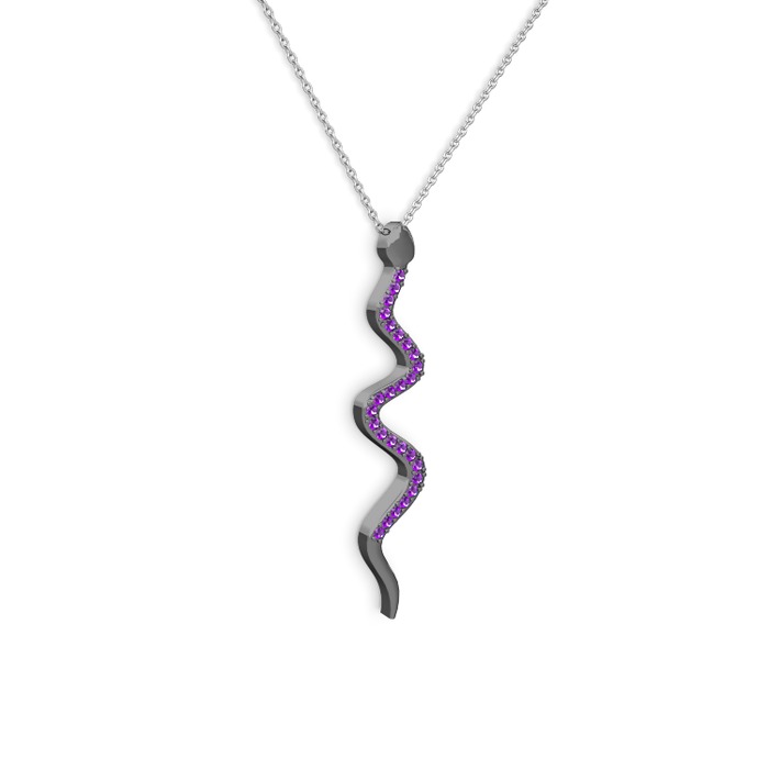 Ametist 925 ayar siyah rodyum kaplama gümüş kolye (40 cm beyaz altın rolo zincir)