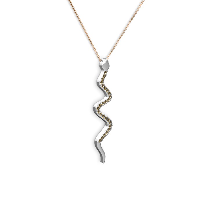Dumanlı kuvars 14 ayar beyaz altın kolye (40 cm gümüş rolo zincir)